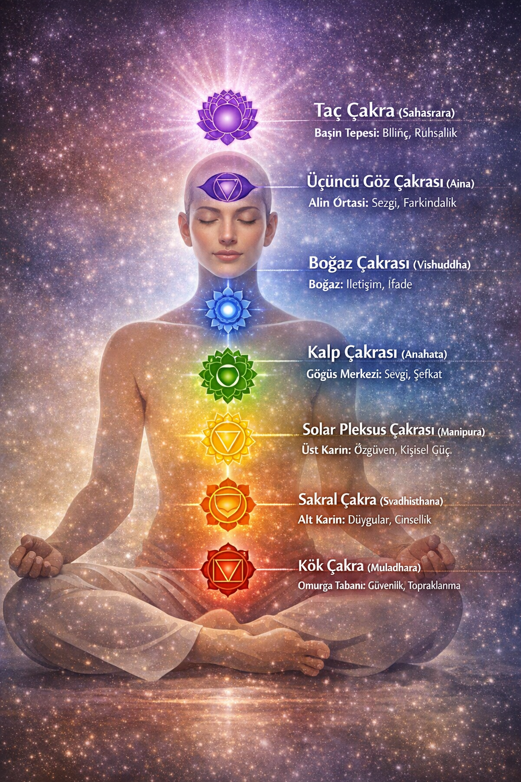 - Üst çakralar (5-7) → Zihinsel & spiritüel boyut