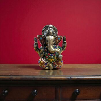 • Ganesha Heykeli Pirinç Alaşım & Taş Bezeli 11,5cm