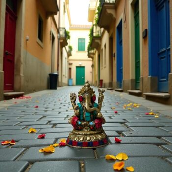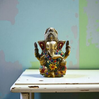 Ganesha Heykeli Pirinç Alaşım Renkli Taş Bezeli 10cmYeni-50%Sınırlı