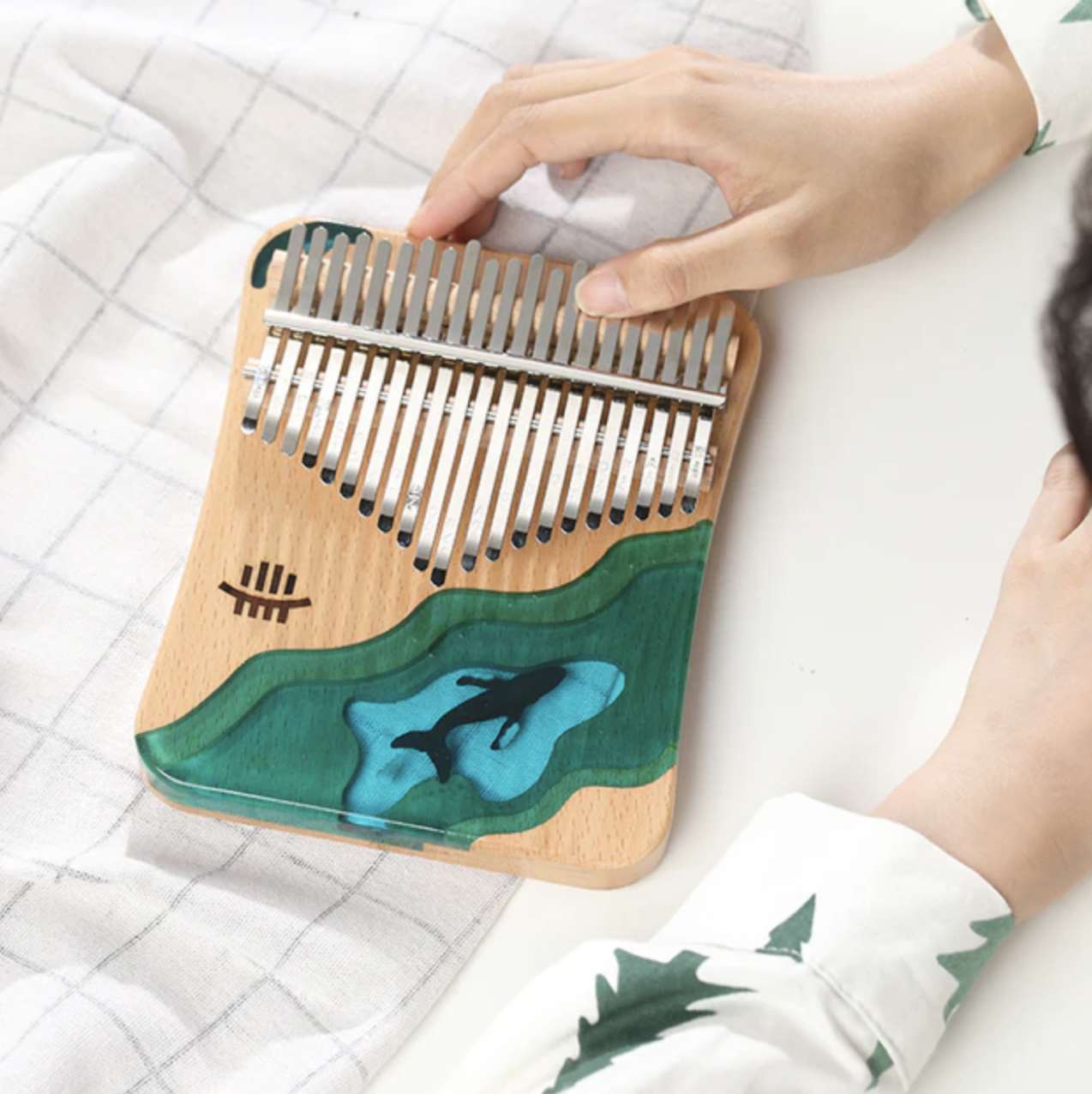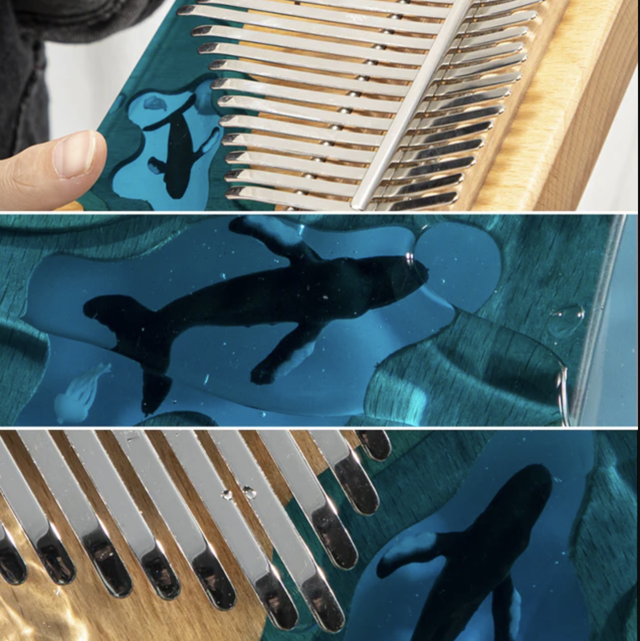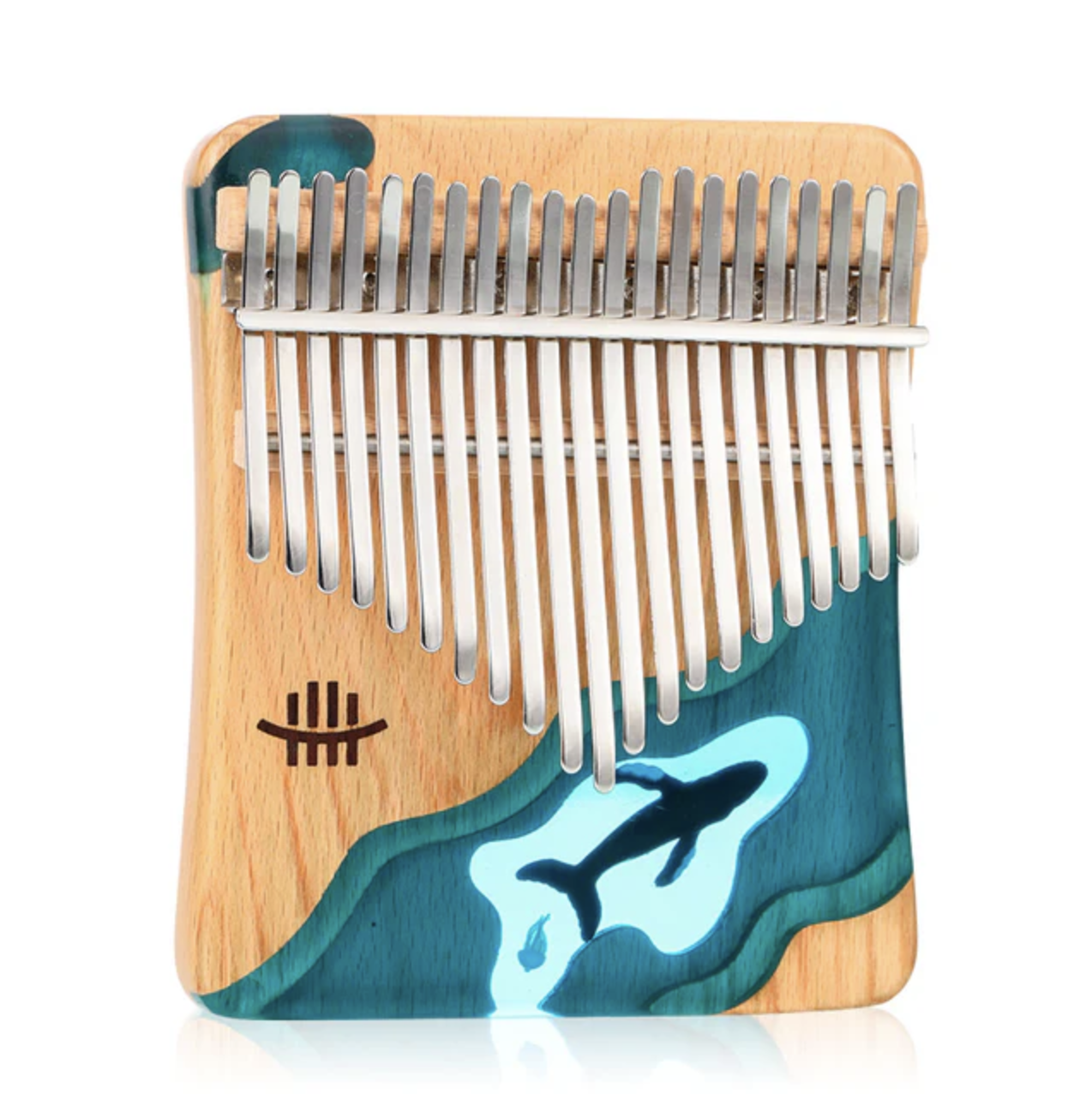 Kalimba Okyanus Temalı Kayın Ağacı Gövde ve Epoksi Reçine 21 Notalı